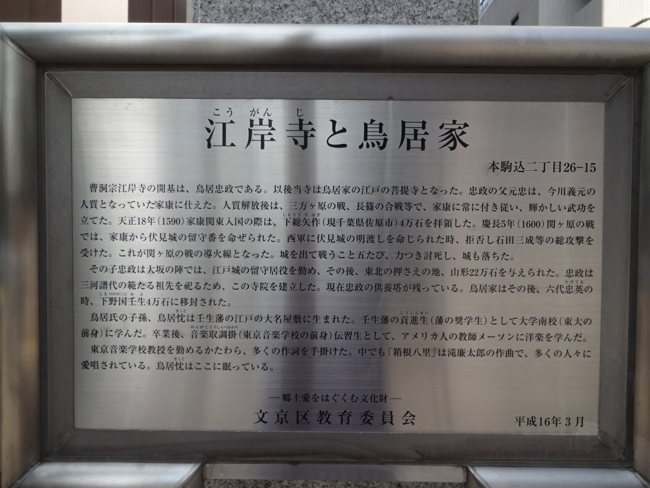 門の前にも駒込土物店縁起の碑や解説板がありました。