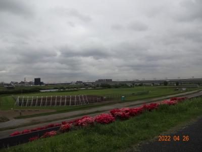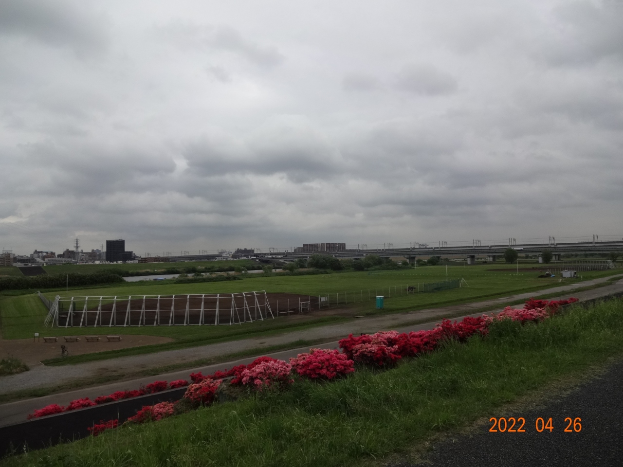 荒川の土手にあるサイクリングロードを自転車で走っていたら、急に雨が降り始めました。