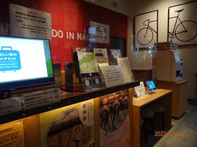 小さな案内所ですが、スタッフの方が常駐していてパンフレットもいろいろ置いてありました。実は、近鉄の駅には沿線のハイキングのパンフレットがあるというので、それが欲しかったのですが、冬のこの時期にはありませんでした。春と秋になるとあるそうです。