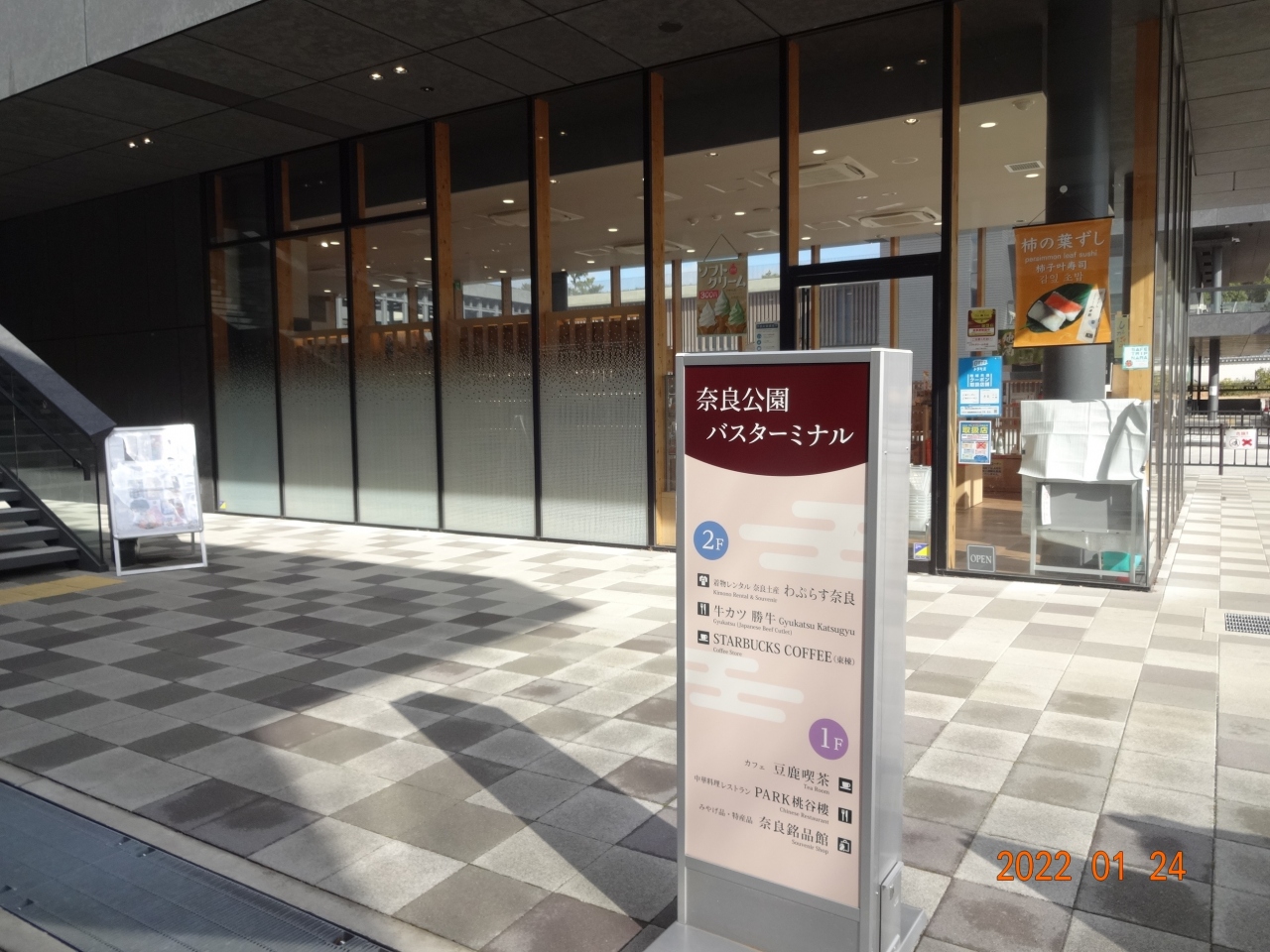 奈良国立博物館の北側です。通りに「夢風ひろば」という大きな表示があったので、ここは何なんだろうと思って、何の予備知識もなく入ってみました。午後二時過ぎだったのですが閑散としていました。人はいませんでした。レストランはありましたが、営業しているような閉まっているような雰囲気でした。奇妙な場所だと思って、その場を離れました。早く、観光客で混み合う場所になりますように!- 旅行時期
