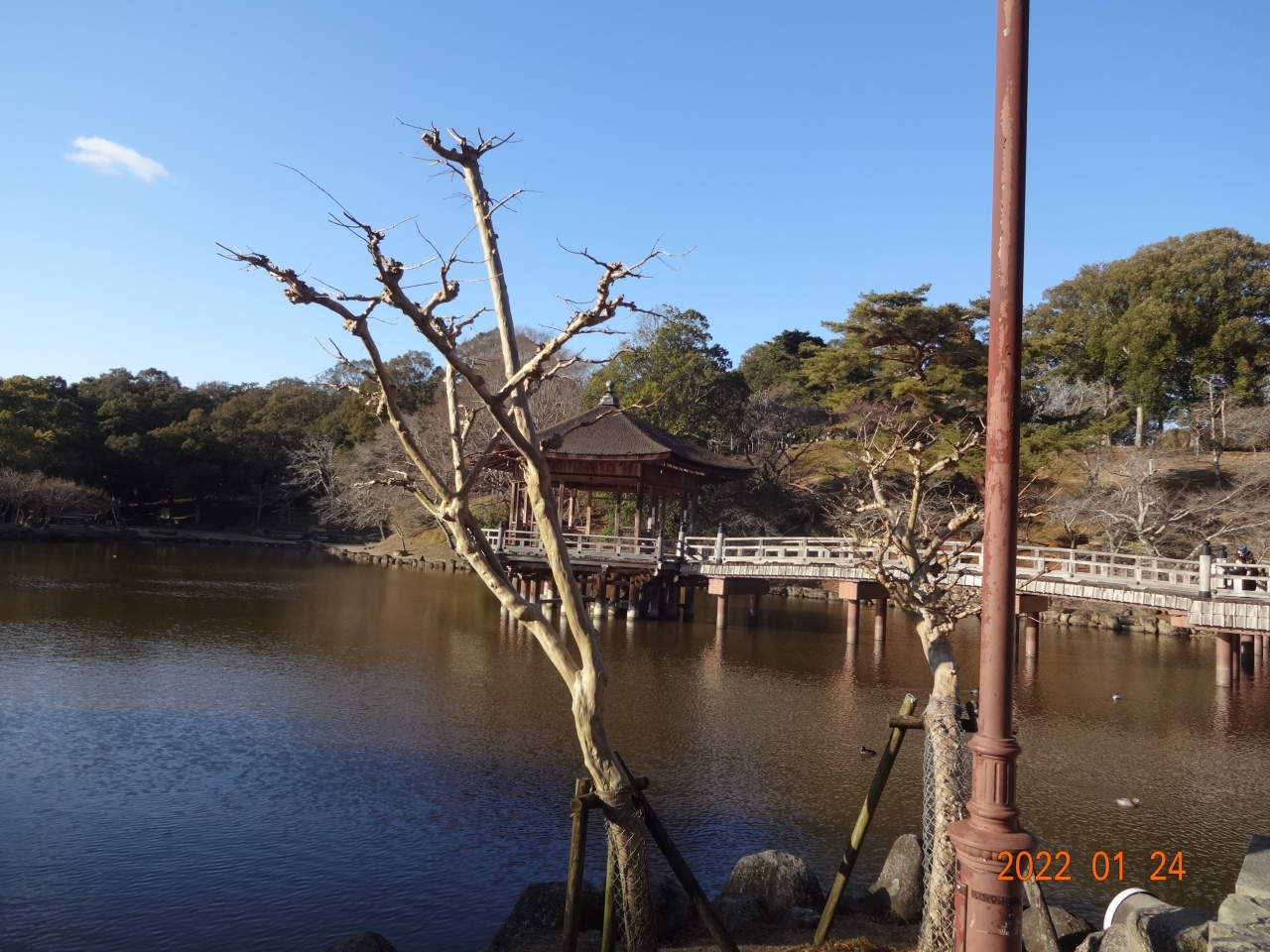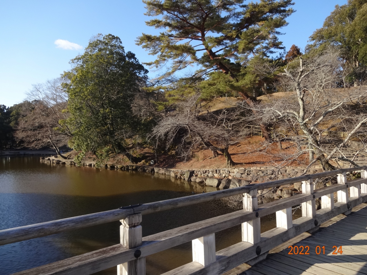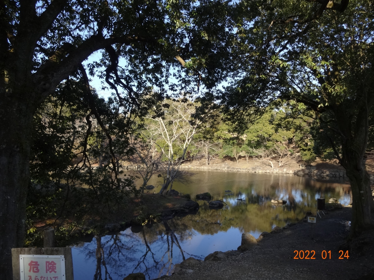 荒池の源は春日山の率川で、この川をせきとめて築堤したそうです。