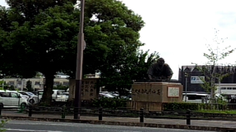 大きな像です。始めて見た時は、「何なんだ、あれは?!」と思ってしまいました。両手をついて、前をまっすぐに見て、睨みつけるような形相です。三条大橋から御所を伏し拝み、皇室の衰微を嘆いたという逸話に基づき造られた銅像なのだそうです。