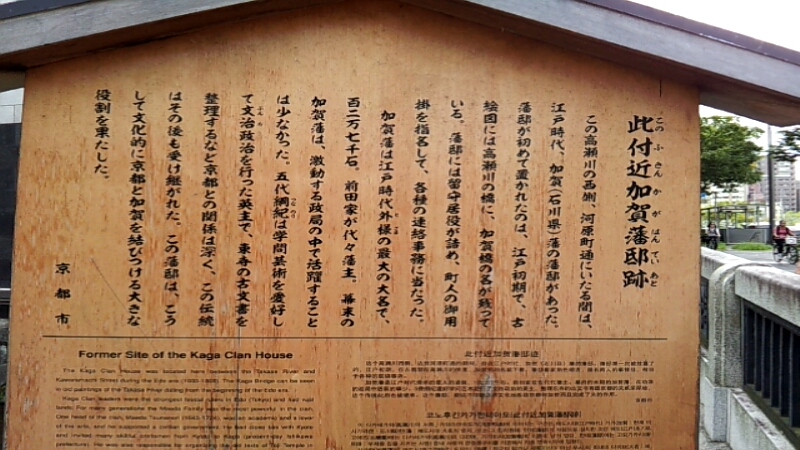 • 高瀬川の西側から、河原町通りにいたる広い範囲に加賀藩邸があったと駒板に書いてありました。