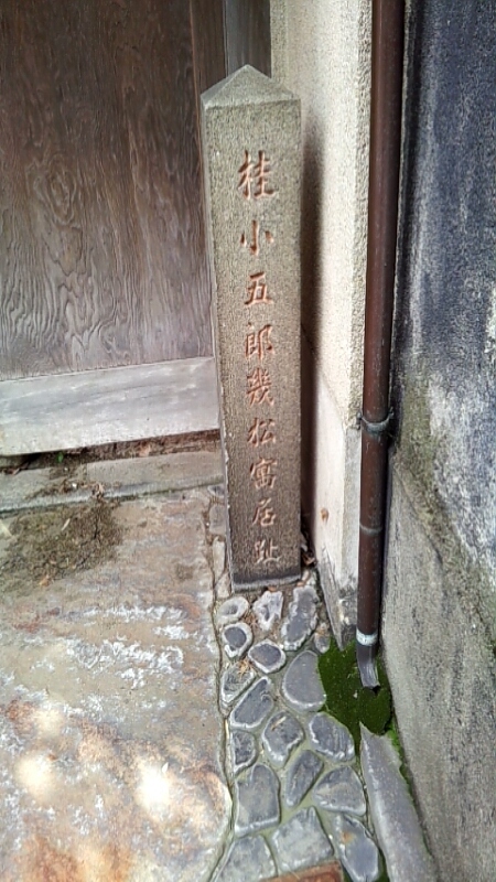 高瀬川の北の端辺りの通り沿いに、小さな小さな石碑がありました。桂小五郎が長州藩士だったとき、花街三本木の芸妓だった幾松と恋仲となり、新選組に追われながら苦難の時代を過ごし、この辺りで暮らしていたそうです。幾松は維新後木戸公夫人松子となったそうです。