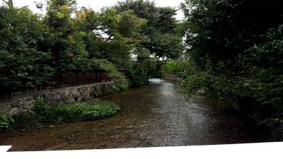 水深は浅いという印象を受けました、川底がよく見えます。でも流れが意外と急なんですよね。水の流れもキラキラして綺麗でした。「白川」という名前の橋から川を眺めながら写真を撮りました。