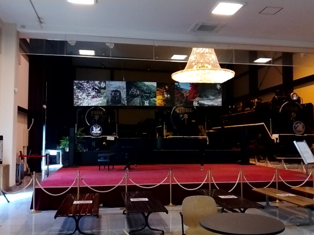 ホール内には、本物のSLが展示されていました。SLの花形、「D51」や「C56」がありました。黒光りして、迫力がある車体でした。そばにあるカフェは、コロナでお休みしていました。- 旅行時期