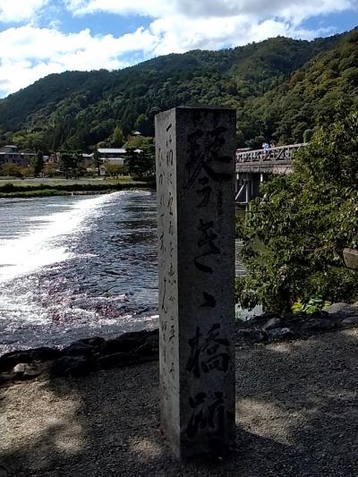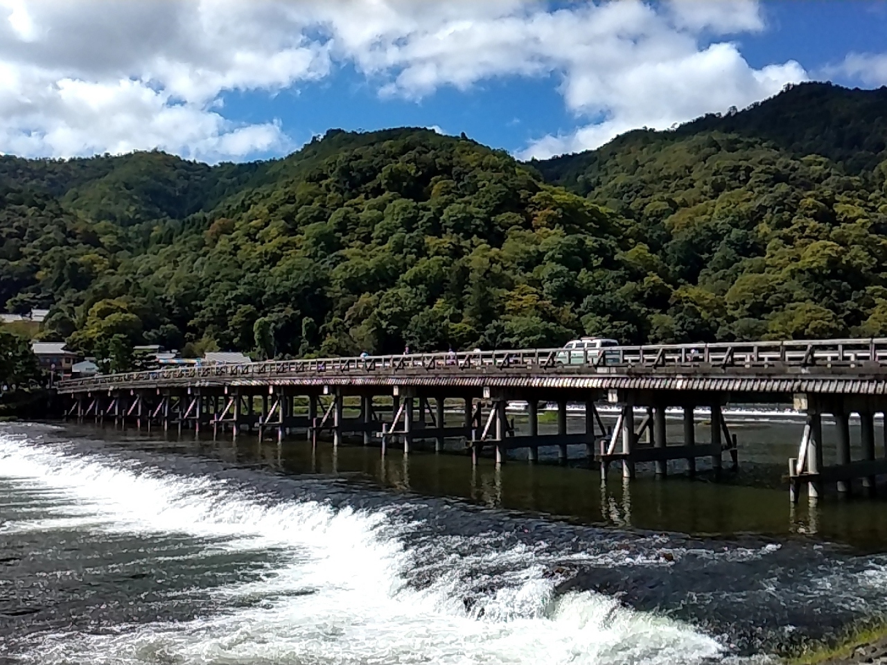 10時前の渡月橋はガラガラだったのですが、この橋を渡って、対岸を散策してから帰るころには、かなり人が増えてきました。- 旅行時期