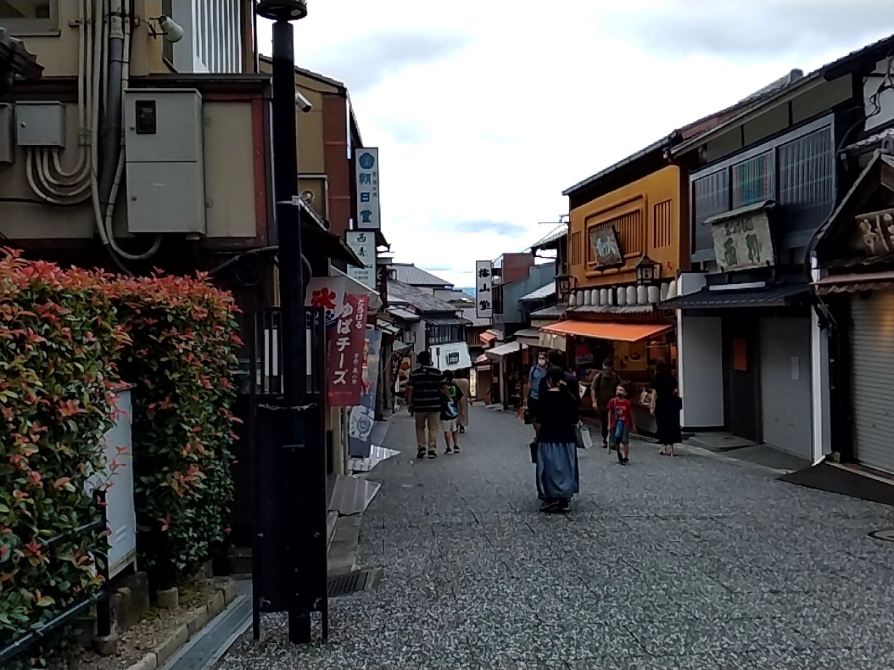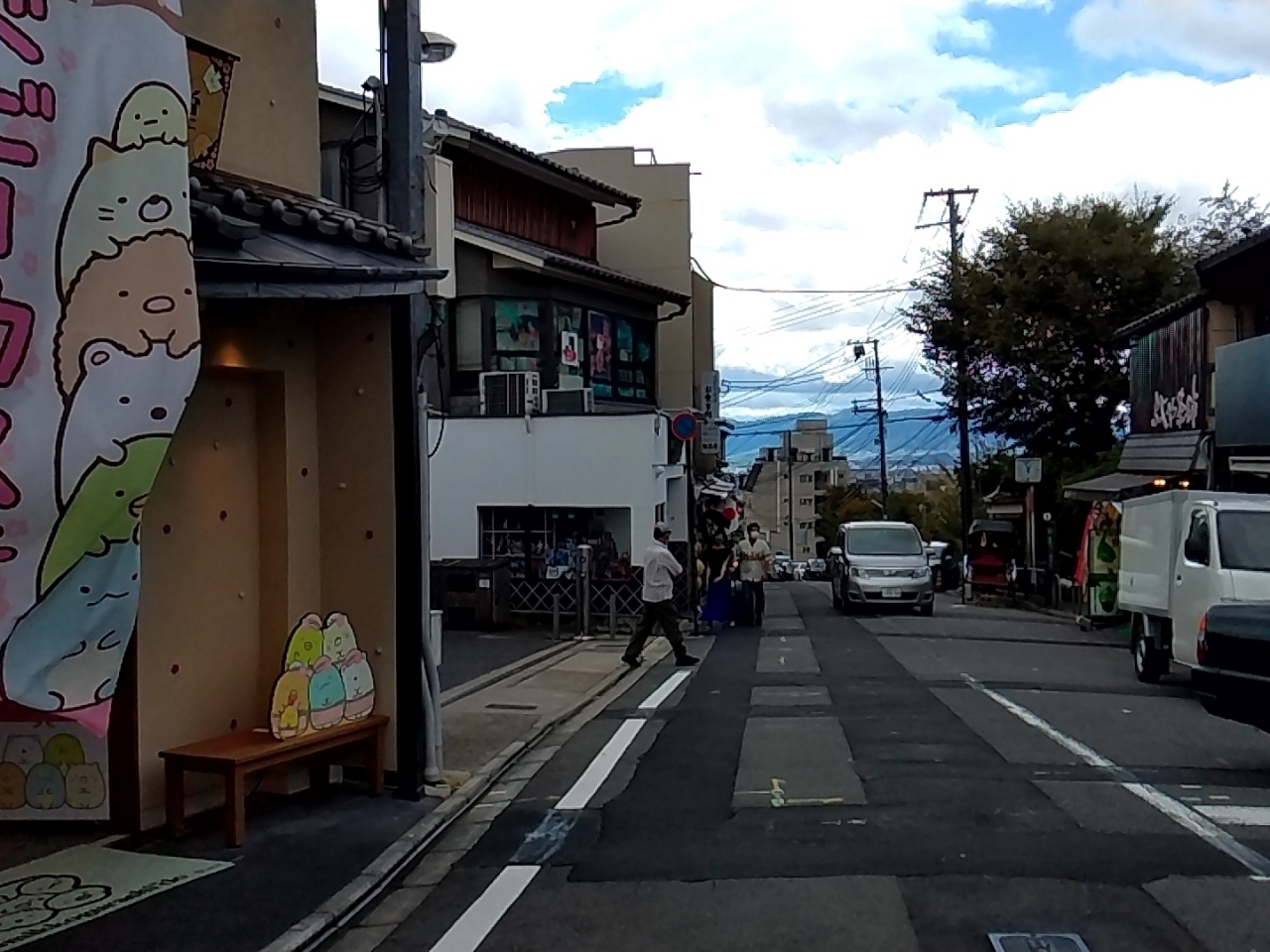 歩いているうちに、目の前にこの華やかな塔が見えてきました。周囲は少しだけ道幅が広かったり、広場っぽくなっています。休業しているお店の前にベンチがあって、そこに座って休憩しました。あでやかな建物で、京都を感じさせます。この周辺には観光客が多かったです!- 旅行時期