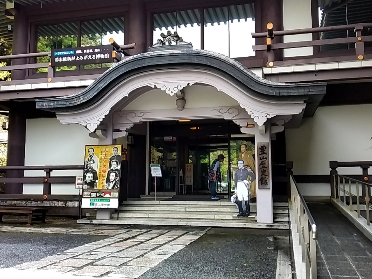 霊山博物館の建物のそばには、ベンチと飲み物の自動販売機がありました。ここで、飲み物を購入してのどを潤しました。