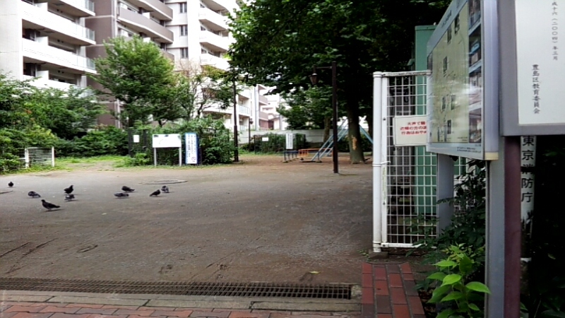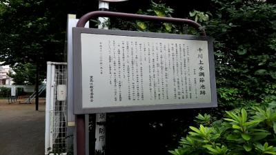明治通り沿いの公園の入口に、「千川上水調整池跡」という表示がありました。