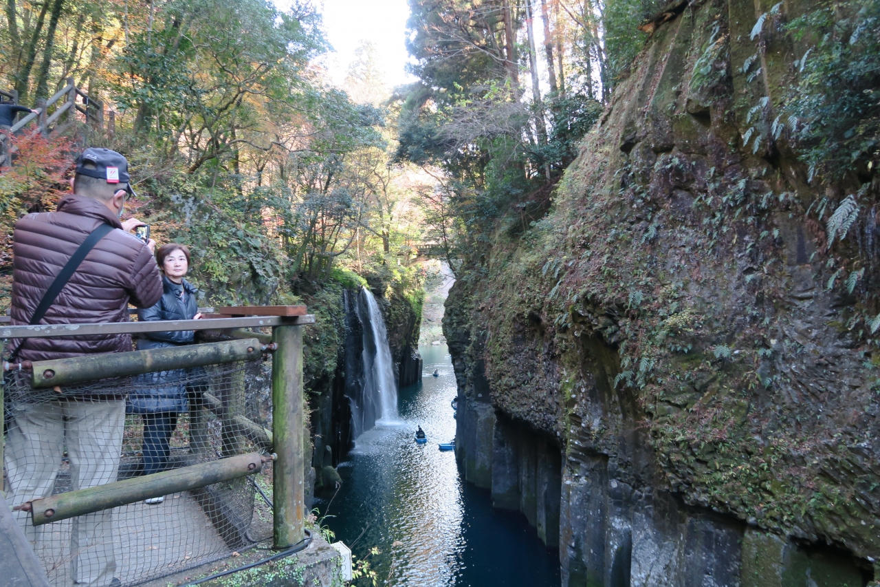 高千穂峡の遊歩道を歩いていた時、複数のボートを見かけました。