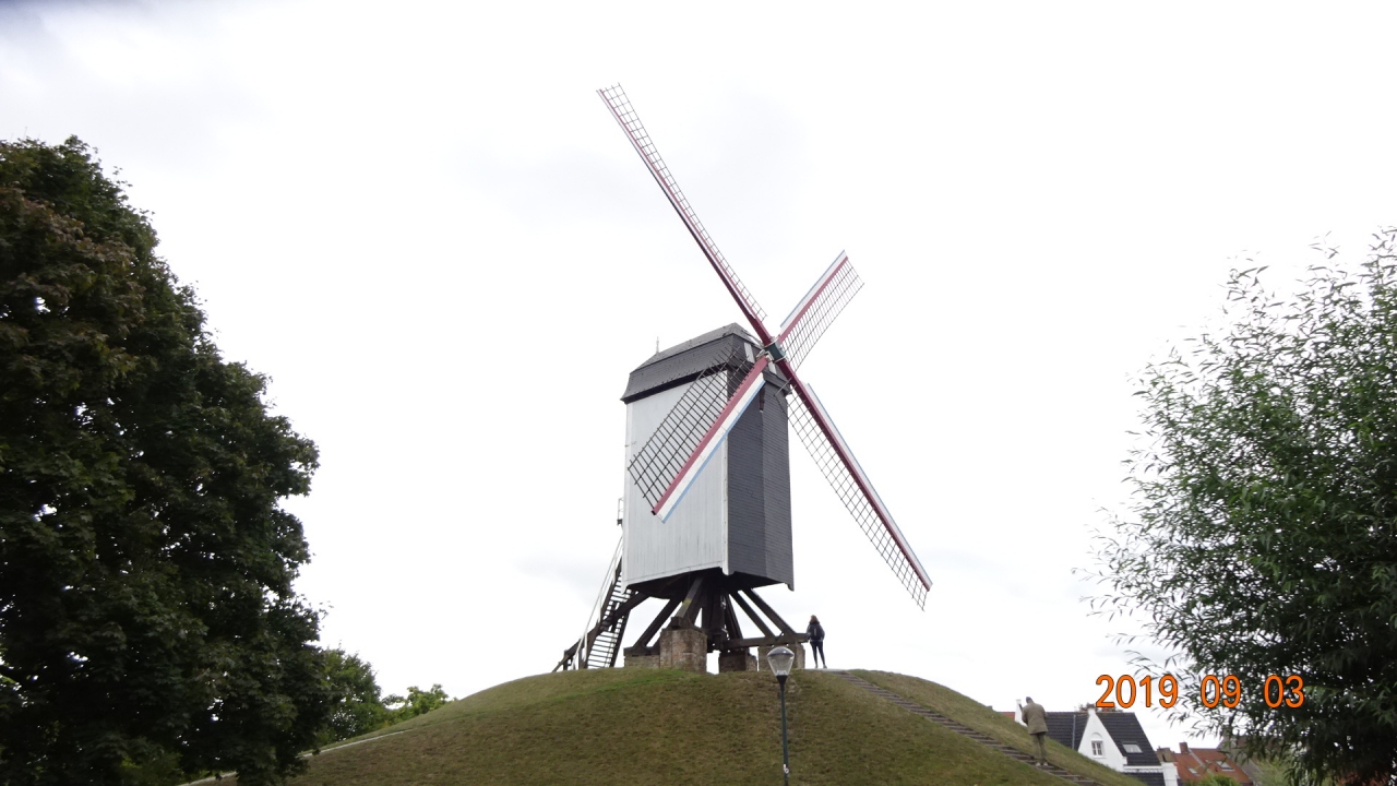 民族博物館の方から歩いて行って、ブルージュを取り囲む川のそばの土手に建っている風車を見に行きました。