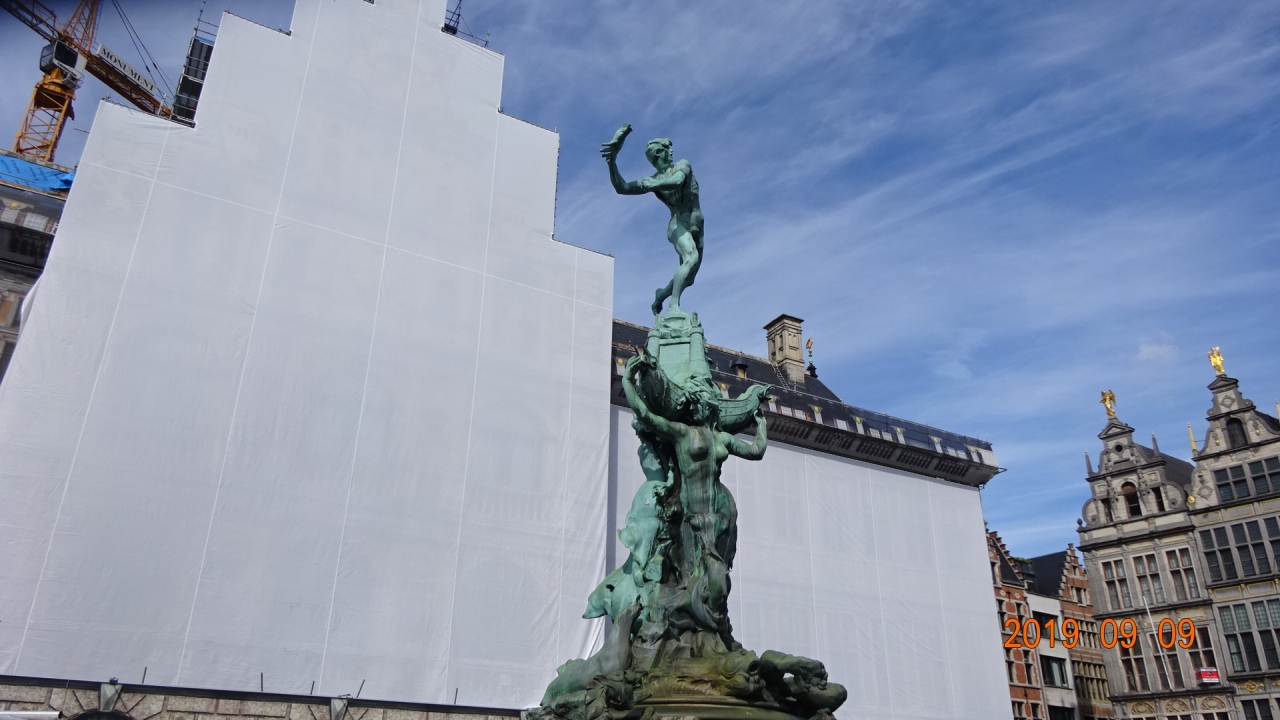 この広場も工事中の様相で、アントワープは観光スポットが工事現場みたいだなと思いながら通り過ぎました。