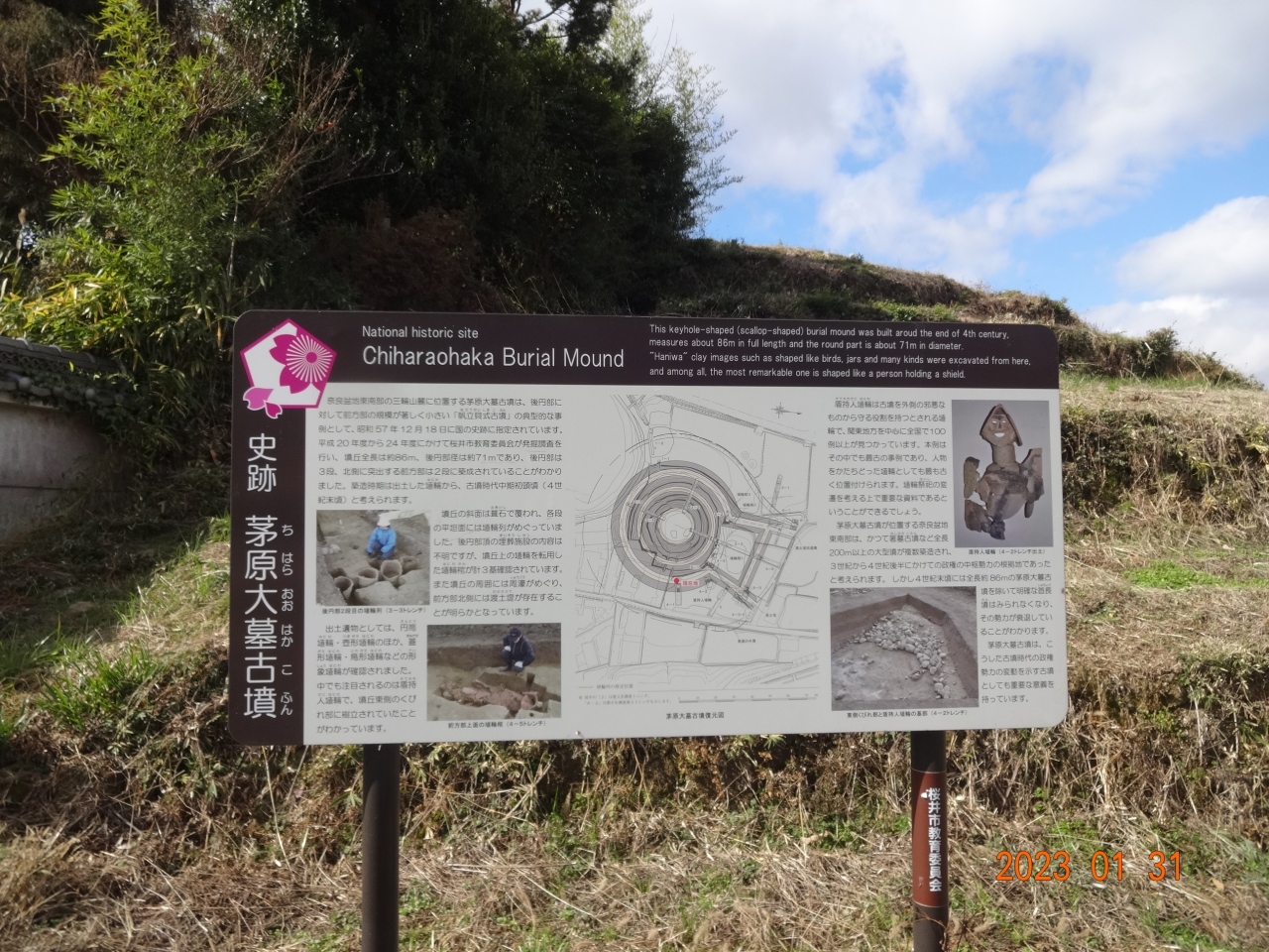 畑の真ん中にちいさなこんもりとした場所があって、そこが茅原大墓古墳でした。