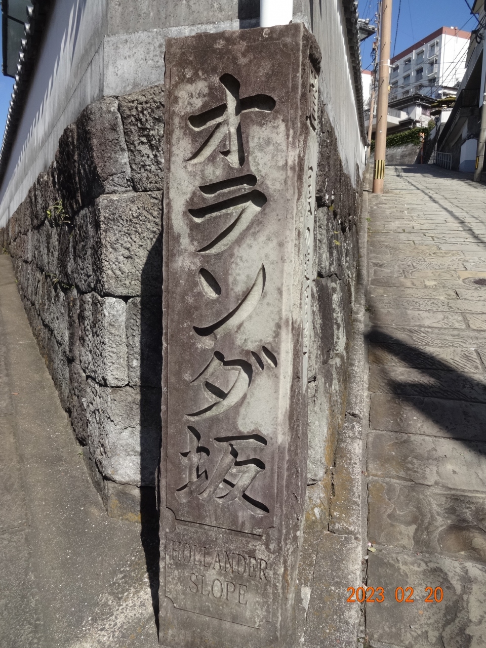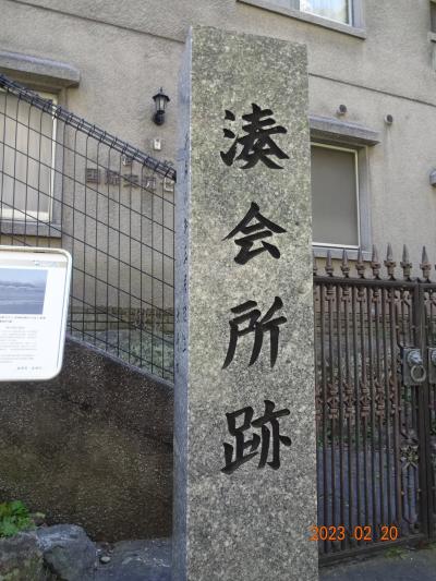 オランダ坂を登り始めると、通りの右側に、この「湊会所跡」の石碑がありました。