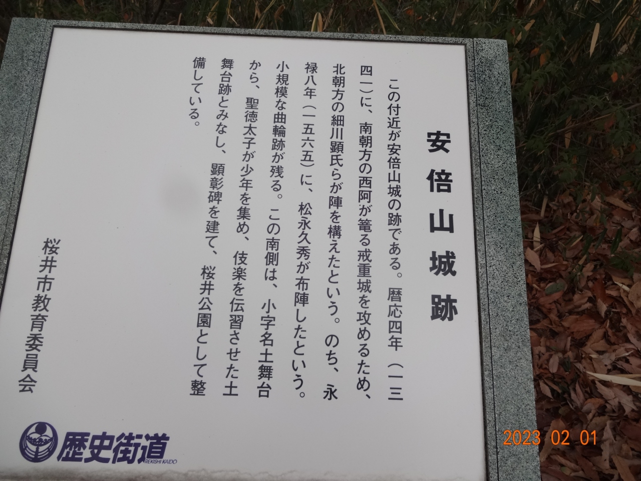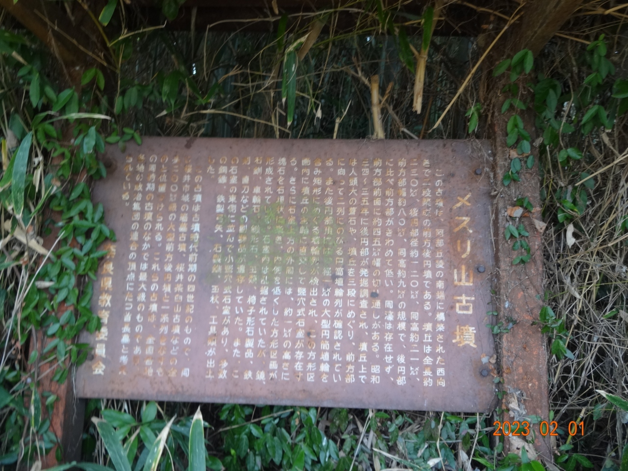 緑豊かで落ち着ける場所です。かなり古びた表示がありました。メスリ山古墳は箸墓古墳、西殿塚古墳、外山茶臼山古墳に続く初期大和政権の大王墓で、築造年代は4世紀初頭と考えられているそうです。- 旅行時期