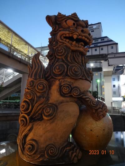 シーサーが、ちょこんと立っている場所は、噴水になっていました。写真を撮ろうと思ったのですが、シーサーのそばに観光客らしき二人連れがいたので、周辺をぐるりと回ってから戻ってきたら、いなくなっていたので写真を撮りました。- 旅行時期