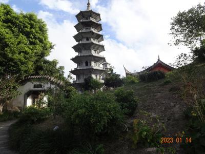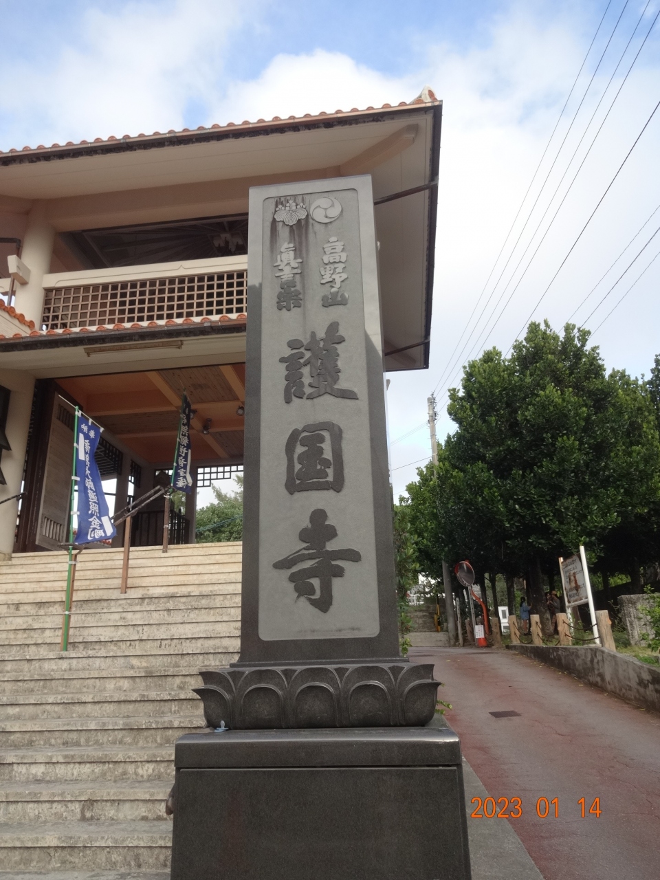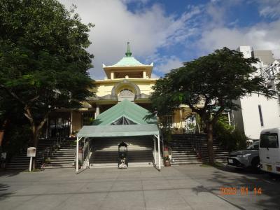 「波上宮」のそばにある「護国寺」の門から階段を登って境内に入り、お参りしました。
