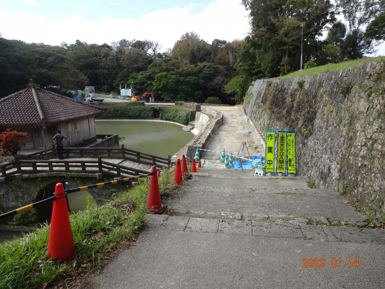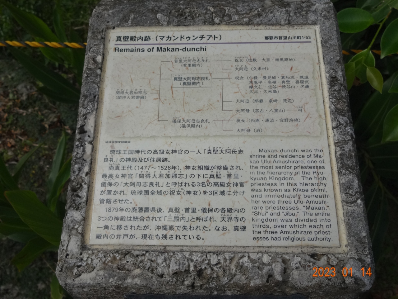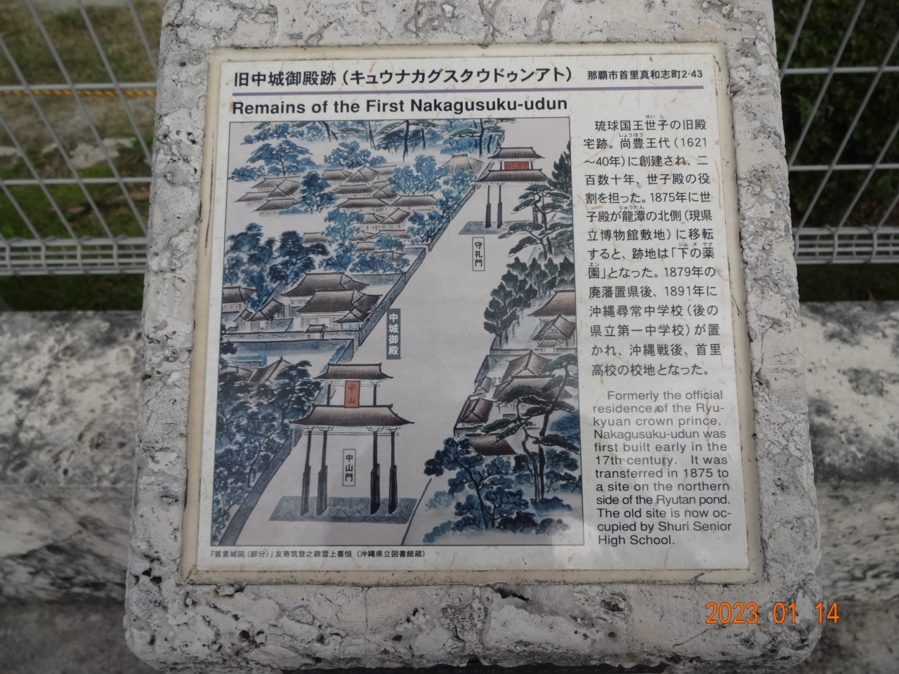 首里高等学校の西側に石碑(旧跡の案内表示)がありました。首里琉染というお店の前です。かってここに、中山門があったそうです。1428年の首里高等学校の西側に石碑(旧跡の案内表示)がありました。首里琉染というお店の前です。かってここに、中山門があったそうです。1428年の創建とされていて、当初は建国門と呼ばれていたそうです。老朽化が進み、1908年に撤去されとか。つまり、約100年前までは、ここに門があったのですね。創建とされていて、当初は建国門と呼ばれていたそうです。老朽化が進み、1908年に撤去されとか。つまり、約100年前までは、ここに門があったのですね。