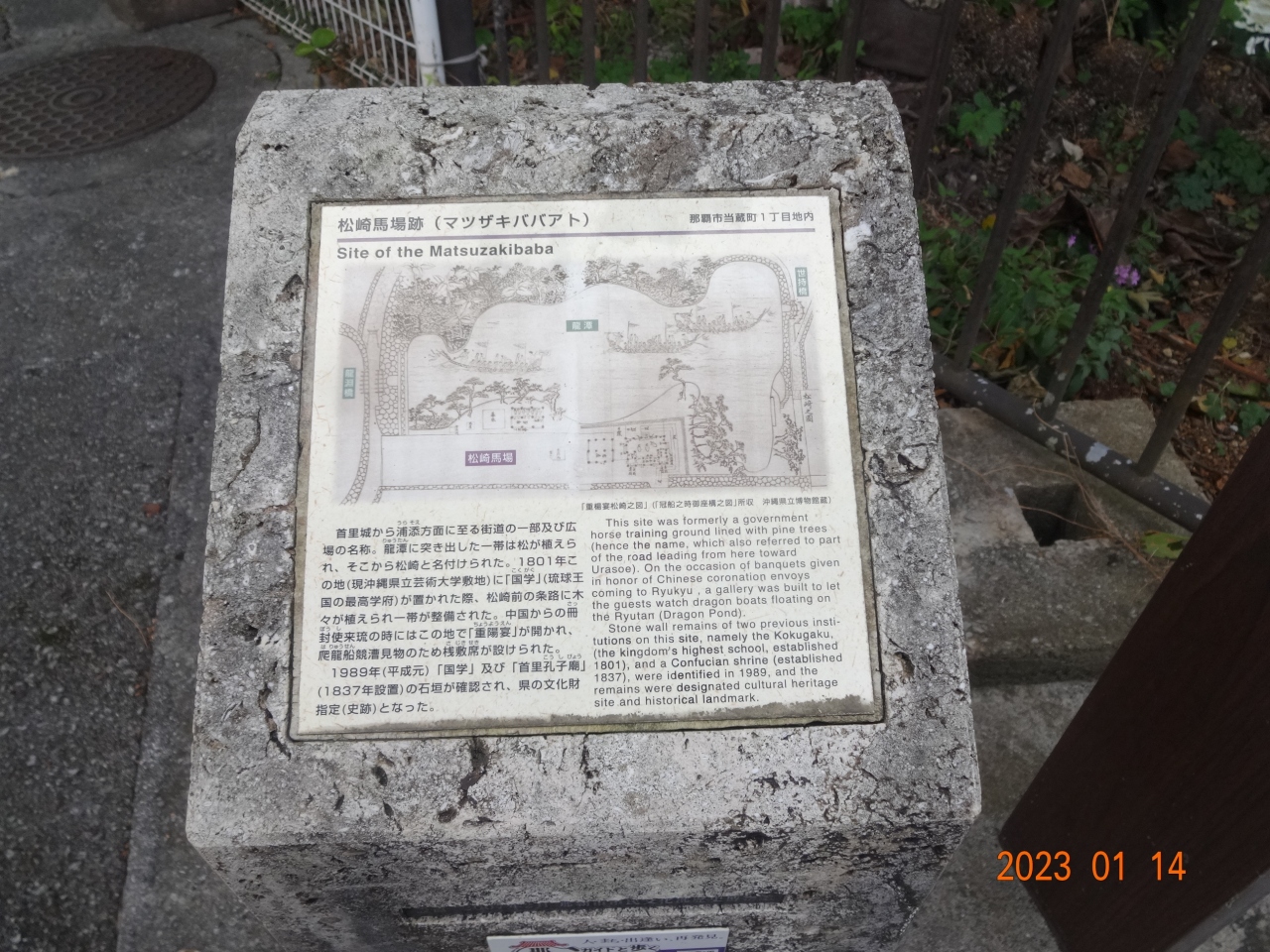 「松崎馬場跡」の石碑(旧跡の案内表示)は、龍潭通り沿いにありました。