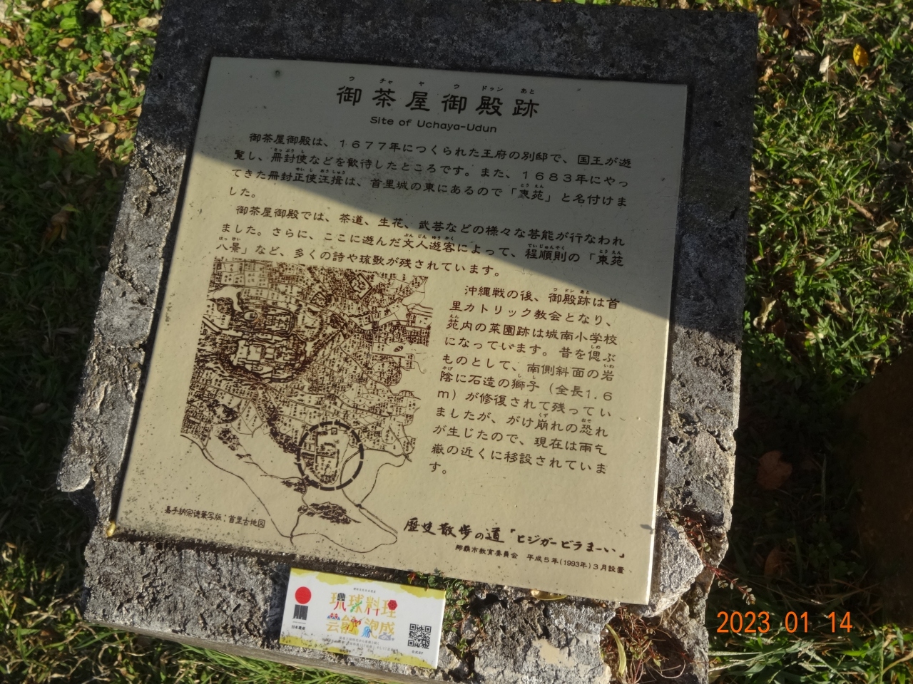 高台にある首里教会の近くに「御茶屋御殿跡」の石碑(旧跡の案内表示)がありました