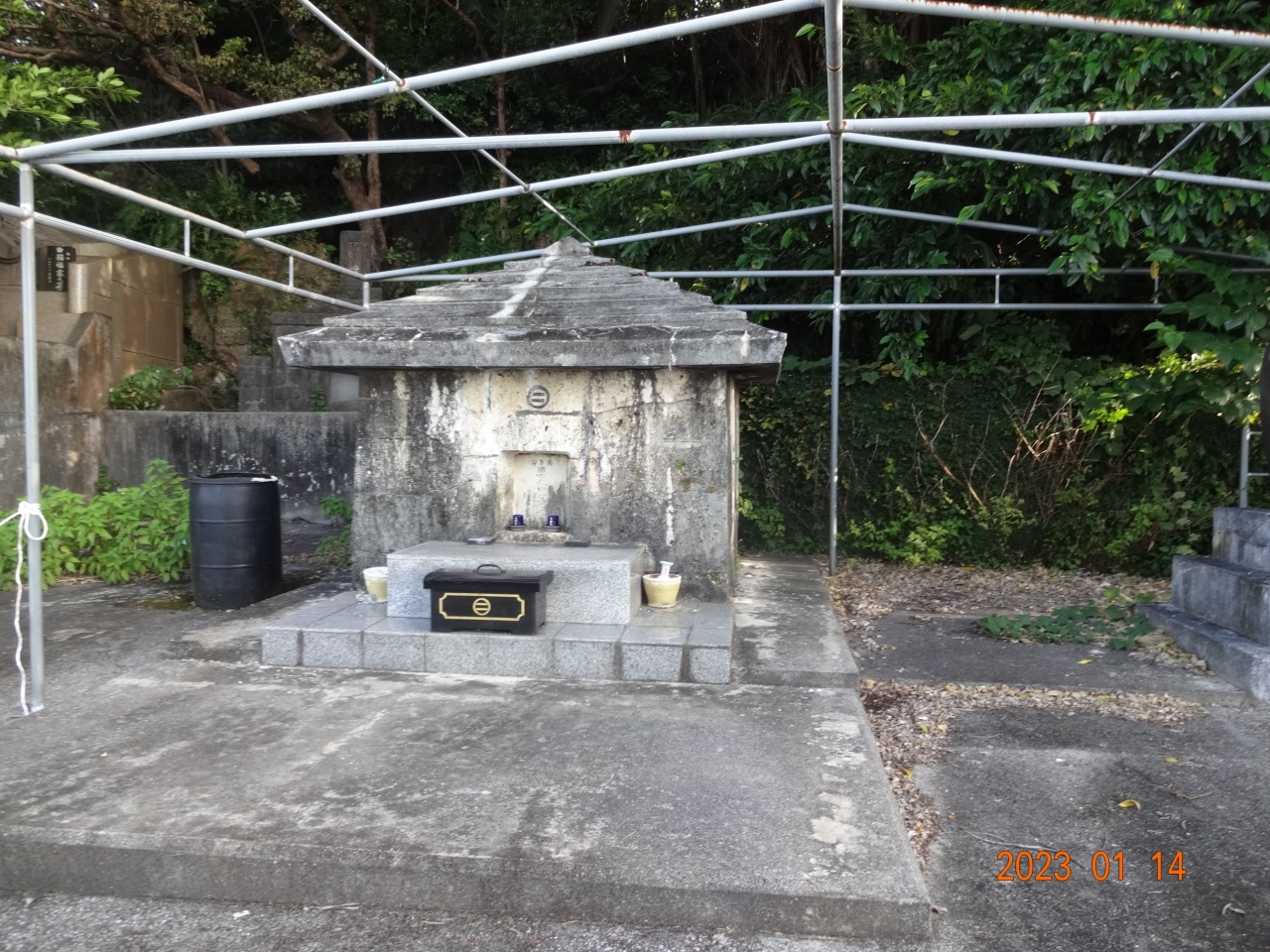 少し階段を降りたところにある広場に「儀間真常の墓」がありました。