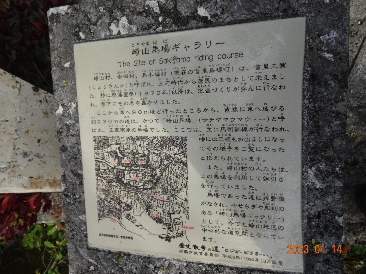 崎山公園を首里城の方向に降りたところに、この「崎山馬場」の表示がありました。