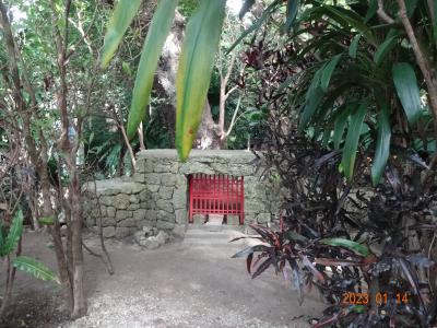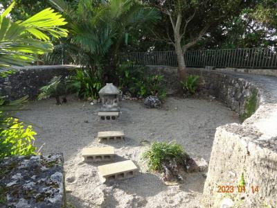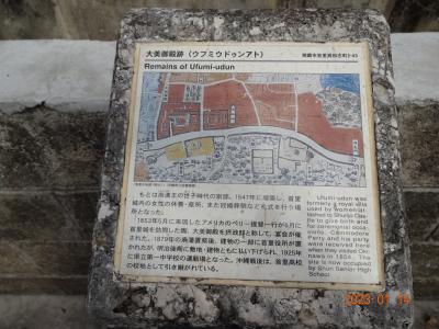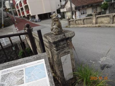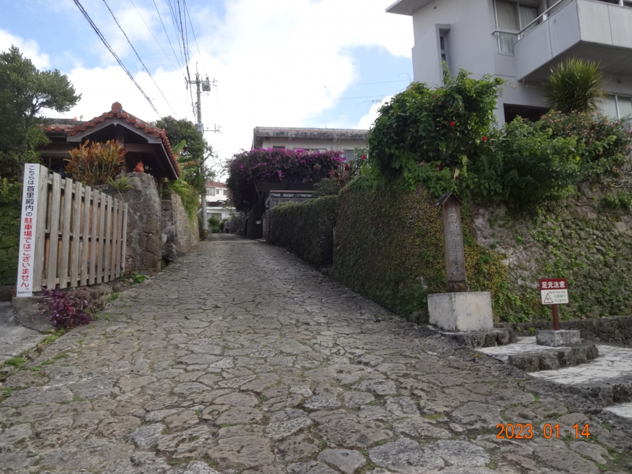 高台にある首里教会の近くに「御茶屋御殿跡」の石碑(旧跡の案内表示)がありました。目立たない場所なので、最初見落としてしまいました。薩摩の在番奉行や中国の冊封使をもてなすために1677年に首里崎山町に造営されたそうです。