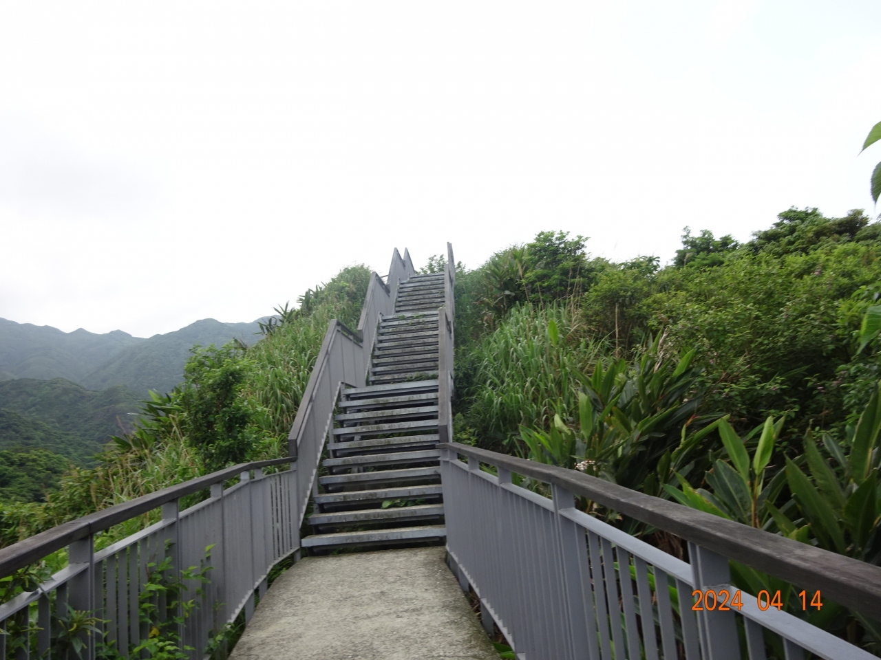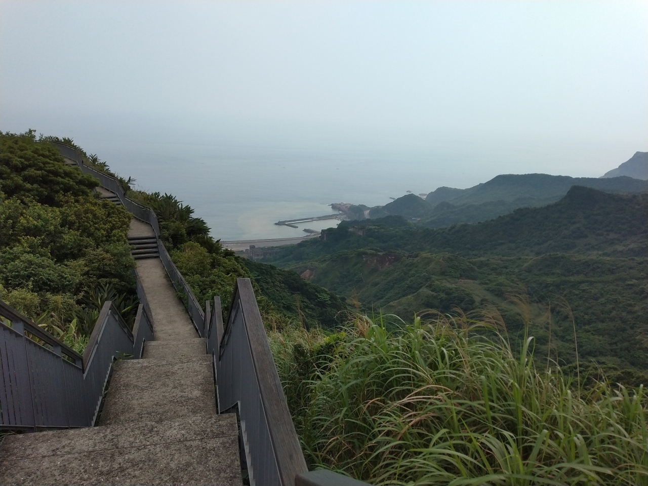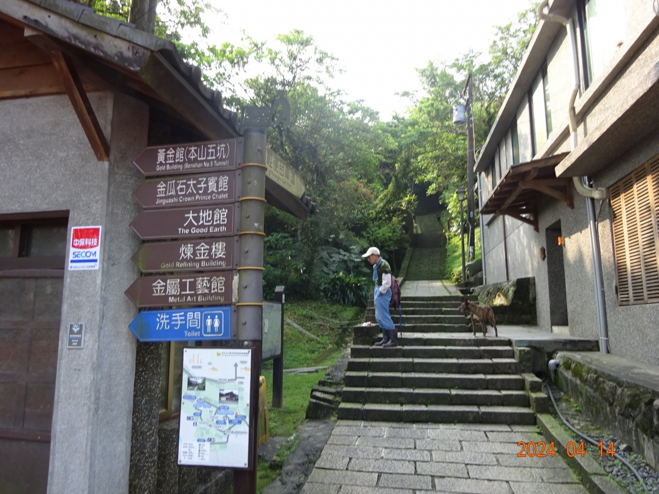 金瓜石の黄金博物館のバス停から、彩虹階梯や金瓜石勧済堂、そして勧済堂停車場で見つけた心洞トンネル、六坑景観台(微笑曲線)という展望台に行き、そこから少し西にある報時山桟道というハイキングコースを北に登っていきました。