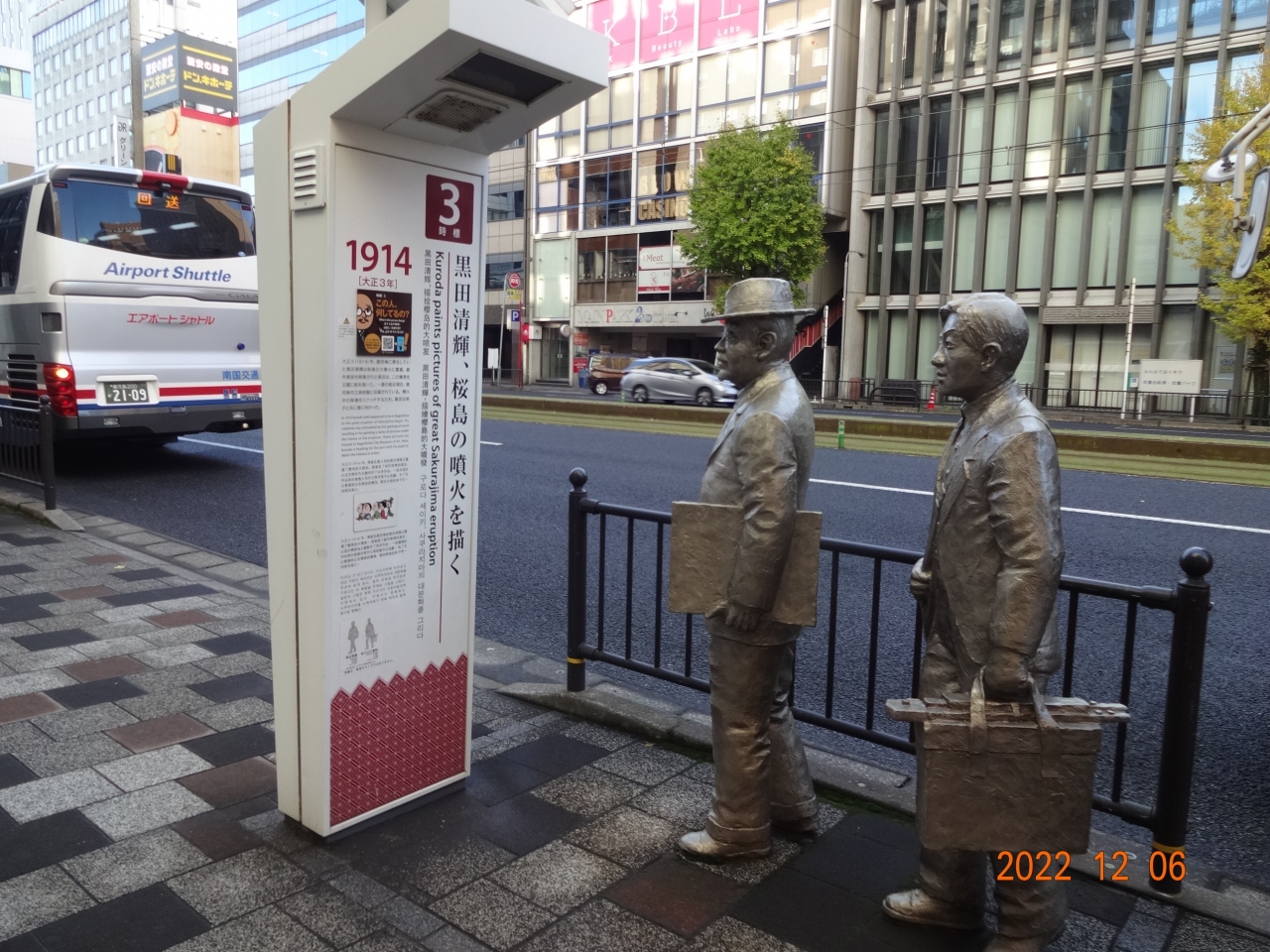 「黒田清輝、桜島の噴火を描く」と書かれた大きな看板(?)と黒田清輝氏の銅像があるので、すぐにわかります。大正3年に鹿児島に滞在していた時に桜島の大噴火に遭遇し、それを描いたそうです。- 旅行時期
