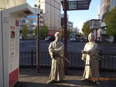 人通りが多い交差点の角にあります。「イギリス人に死傷者を出した生麦事件を解決するため、イギリスは薩摩に艦隊を派遣し、イギリス艦隊入港の知らせを聞いて、大山巌、西郷従道、山本権兵衛も港へ急いだ」と案内板にあります。- 旅行時期