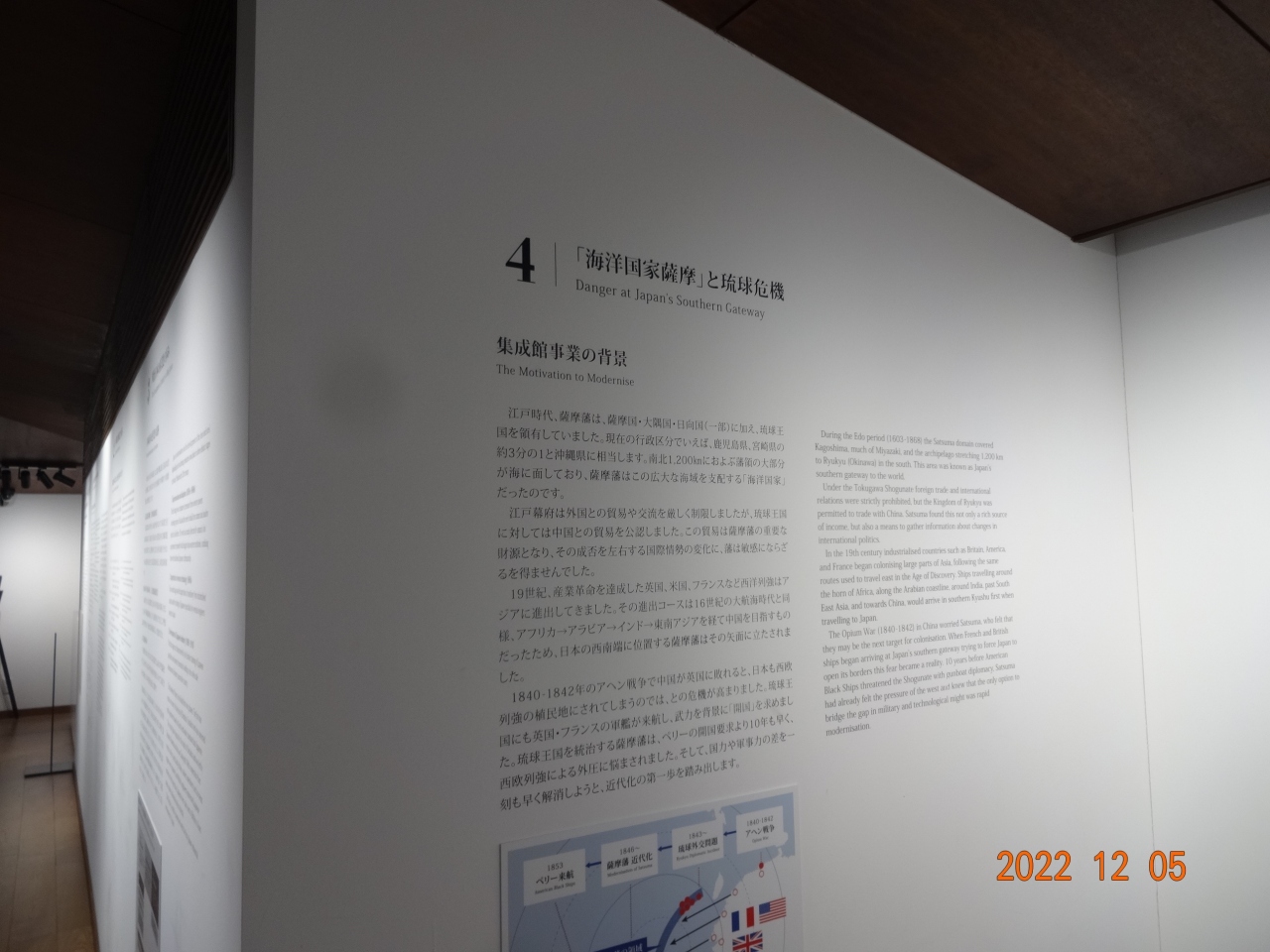 仙巌園の中にありました。入口に近い場所にあります。それほど広いスペースではありませんが、冷たい雨の中、庭園を歩き疲れて、体が冷えていたので、暖房が入っているこの場所で、休憩しながら展示物を見させていただきました。