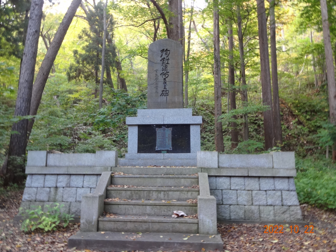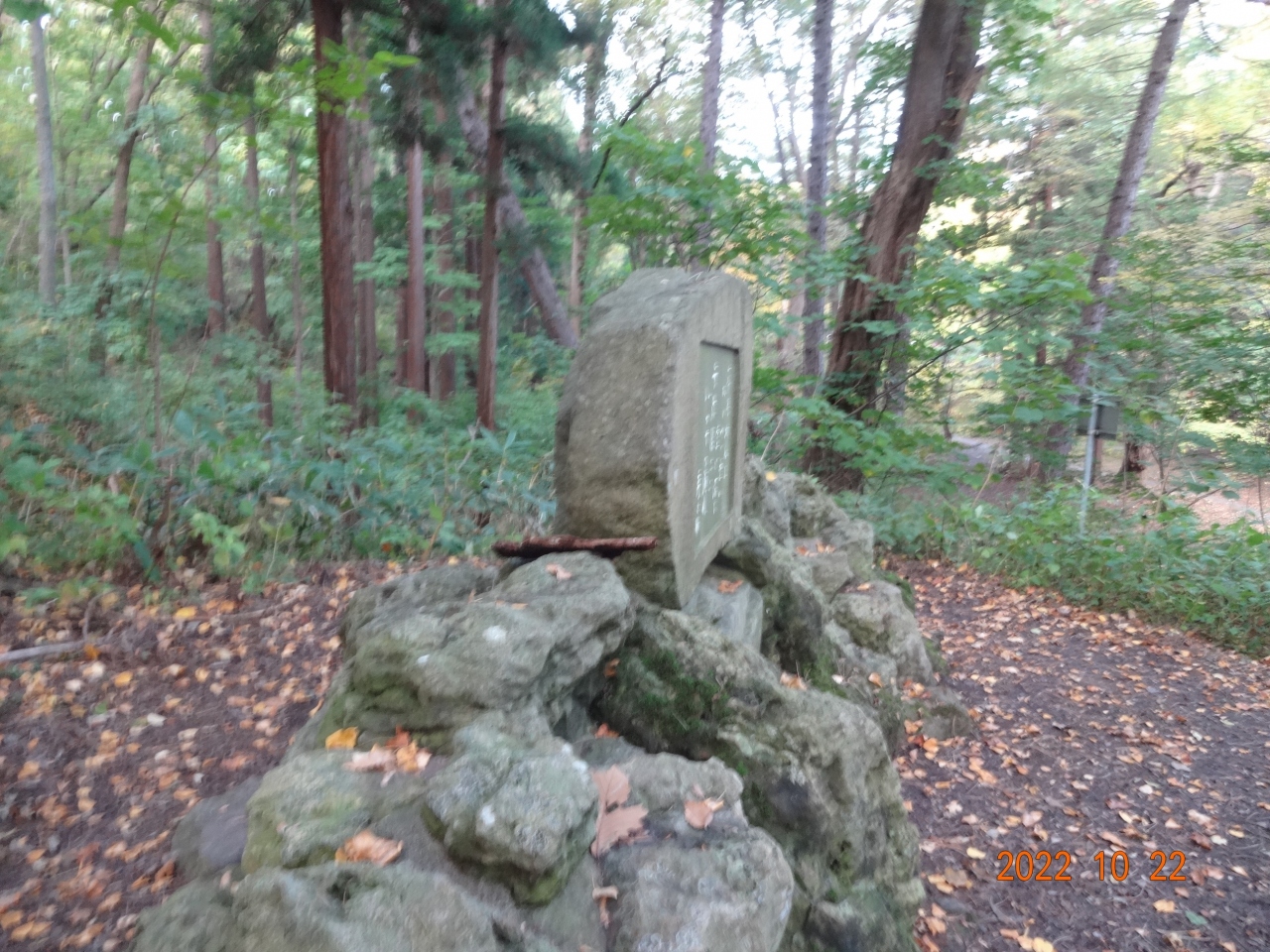石碑の周辺には、「カラスに注意」という注意書きが、あちらこちらにありました。