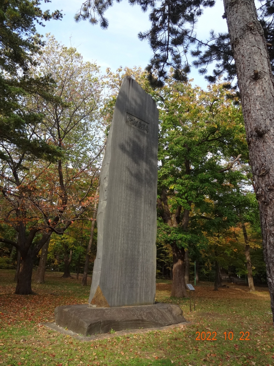 円山公園の入口の近くで、比較的人通りが多い付近にある石碑です。