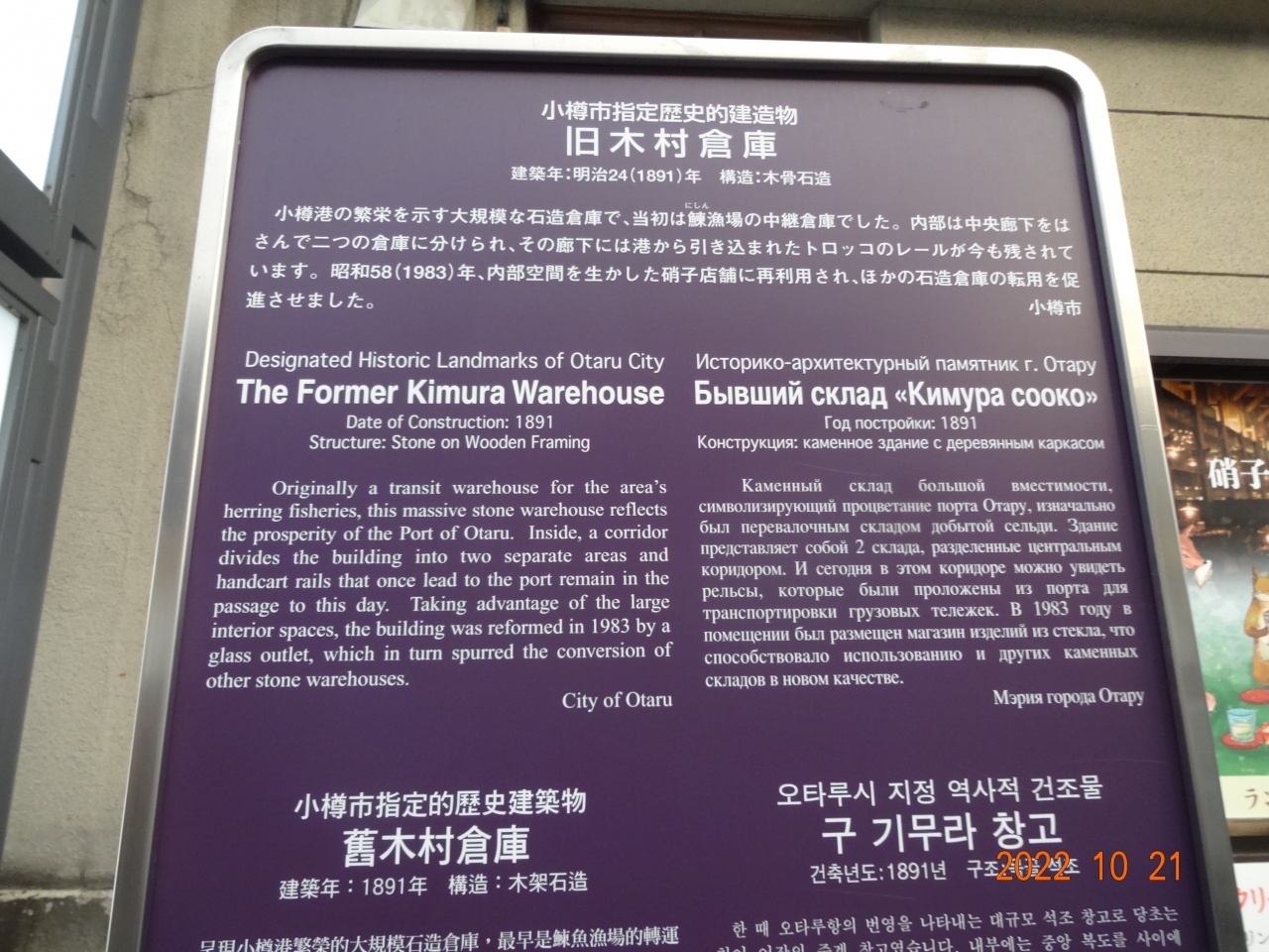 旧木村倉庫は、明治24年に建てられた木骨石造2階建ての建物で、小樽市指定歴史的建造物 No.21になっています。