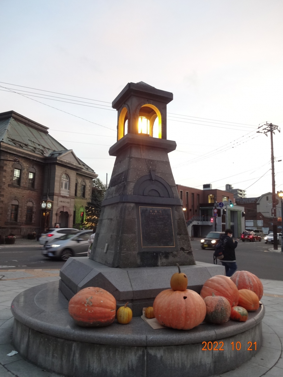 常夜灯の周りは、大きなかぼちゃの置物がありました。この時期は日暮れが早いので、日暮れ時の雰囲気が、すごく良かったです。- 旅行時期