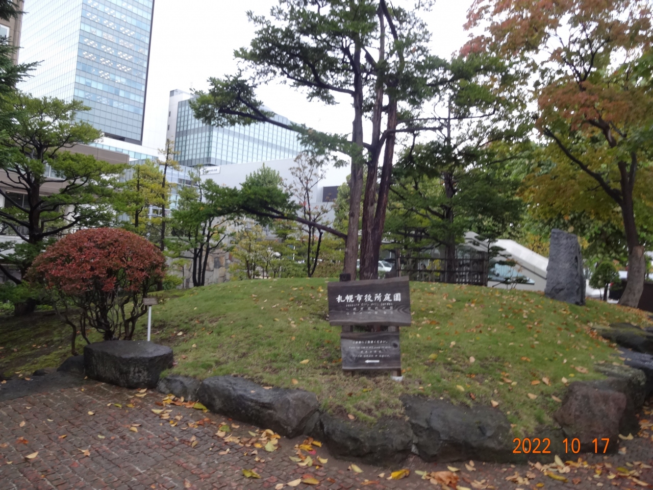 それなりの広さがあり、北側には清華亭とその周辺の公園があり、緑がある地域です。札幌の紅葉も始まっていました。- 旅行時期