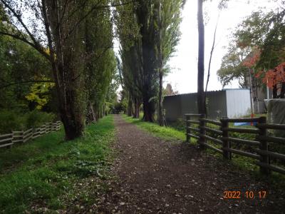 修学旅行生らしき高校生のグループが、このポプラ並木を歩いていました。