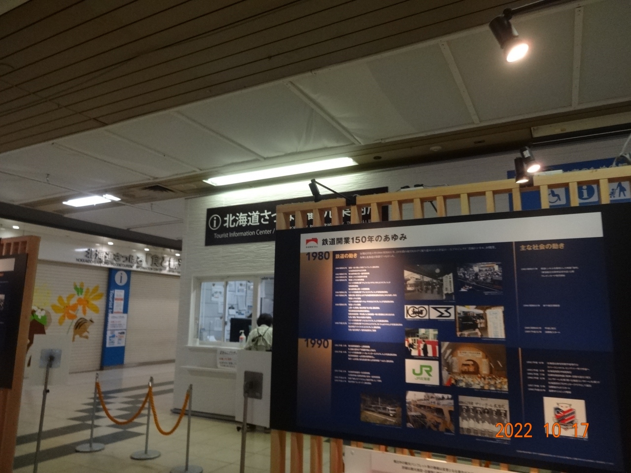 「鉄道開通150年の歩み」などのパネル展示のコーナーや、いろいろな観光パンフレットを置いてあるスペースのそばに、観光案内所の窓口がありました。