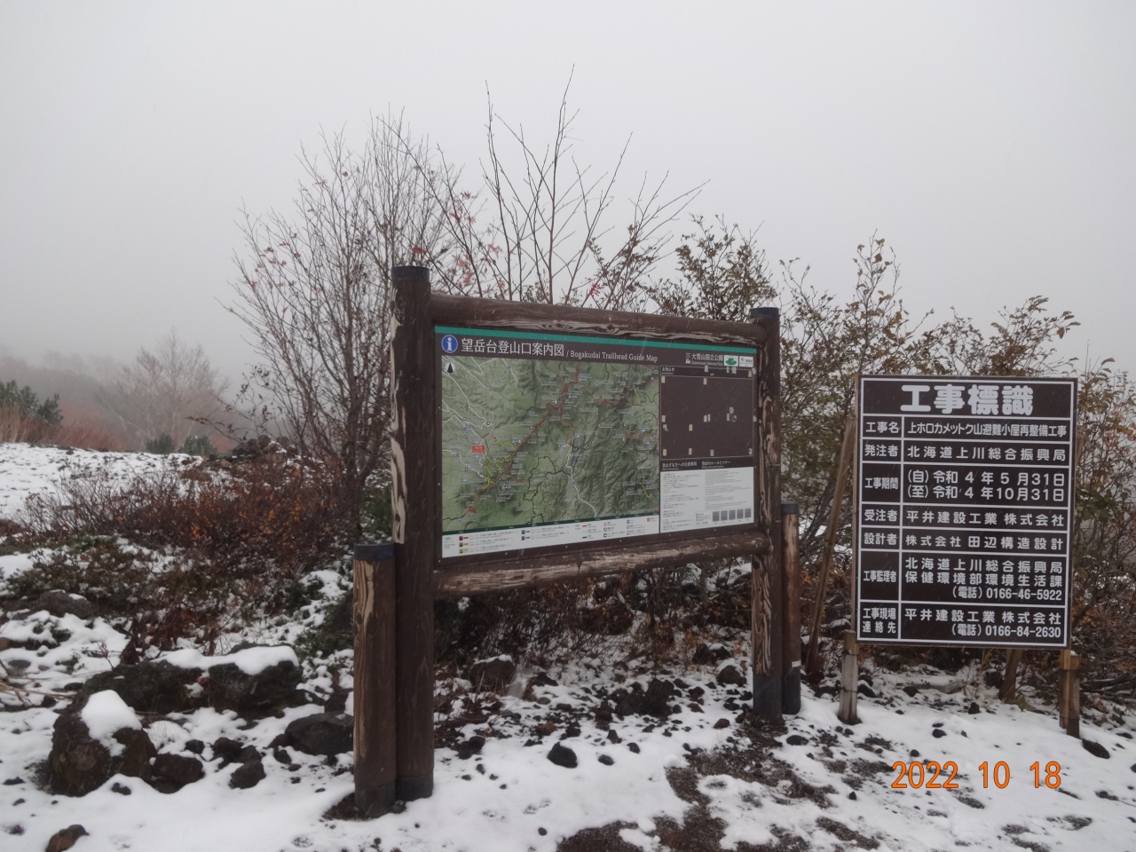 望岳台に到着したときは、みぞれのような雪が降っていて、凄まじく寒かったです。足元が悪い中を、何も見えない望岳台まで歩いていきました。