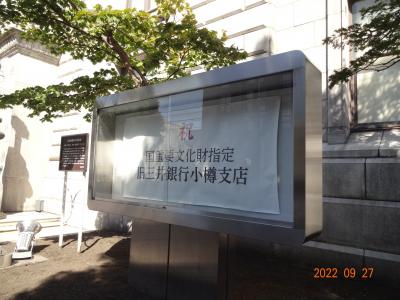 小樽市には、重要文化財(建造物)は、旧日本郵船株式会社小樽支店と旧手宮鉄道施設、そして、最近指定された旧三井銀行小樽支店の3件があるそうです。