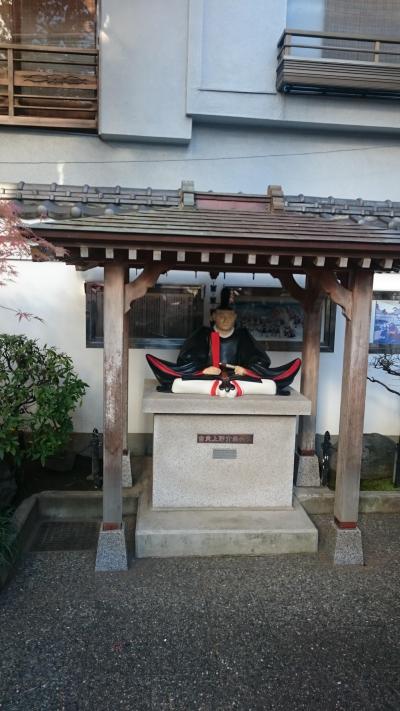 赤穂浪士の街歩きツアーに参加した際に案内を受けました。赤穂浪士一行が休憩した場所はこことちくま味噌のところですが、こちらの場所は討入り後に間もなく一服した場所のようです。荒ぶる気持ちを一旦落ち着かせて泉岳寺へと再び歩みだしたのでしょう。現在は駐車場になっています。