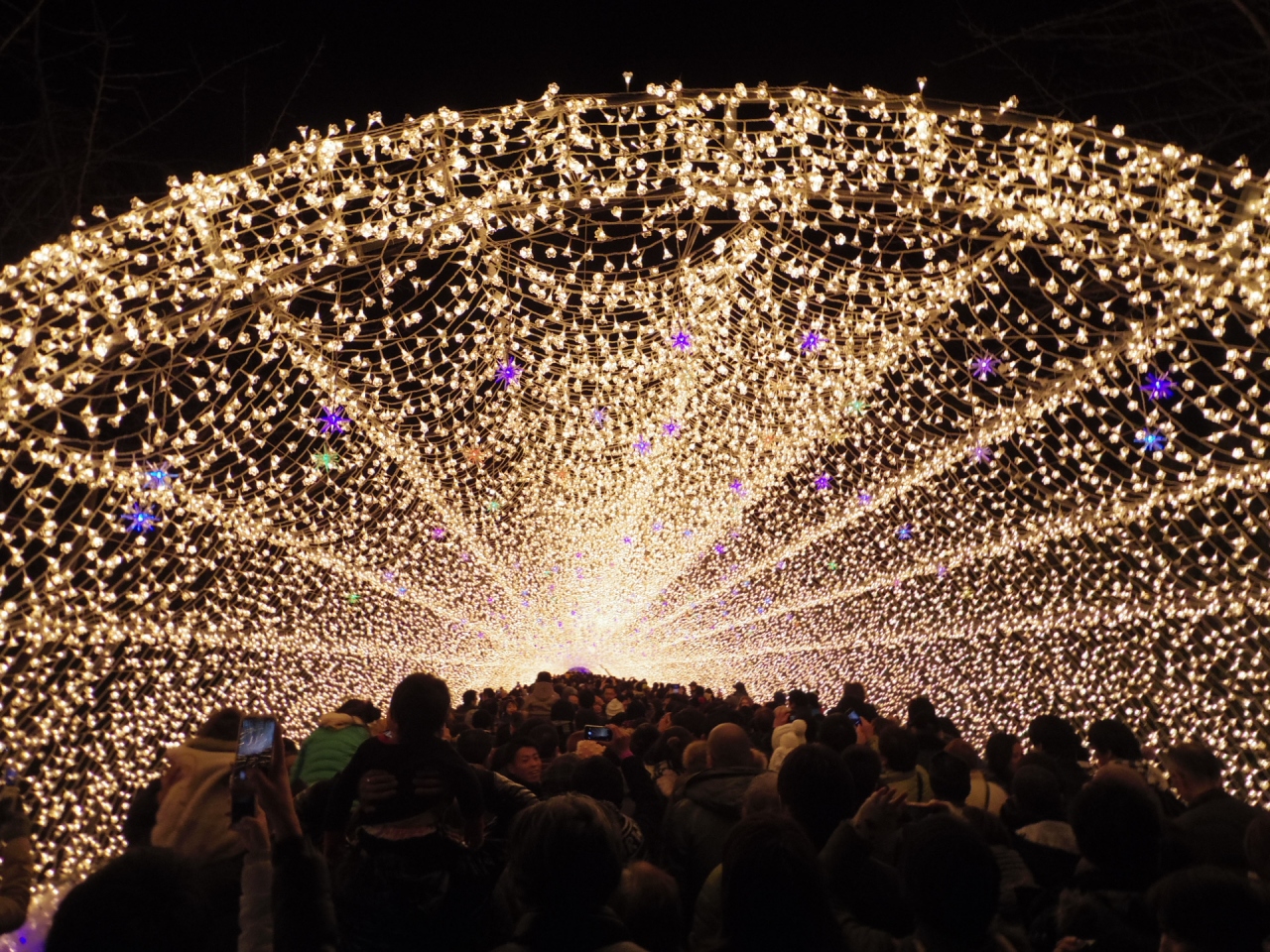 何十万個もの電飾で彩られたイルミネーションは入ると、ただただ幻想的です。特に光のトンネルはここでしか出来ない体験です。ものすごい人で進むのに時間が掛かるのと、夜は寒いのでしっかりと着込んで行くことをおすすめします。