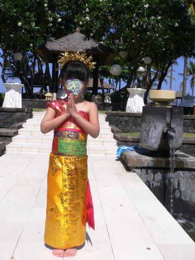 コンラッドのキッズプログラムの中にバリニーズ衣装を着せてくれるものが無料であったので体験してみましたが 馬子にも衣装で可愛く仕上がり良い記念になりました。