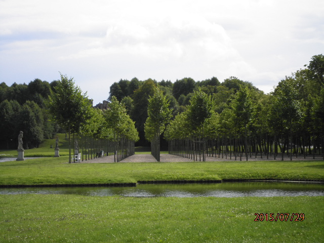 美しいシュヴェリーン城から、二つの湖の間を通る道を歩いて行くと、緑の美しい庭園があります。緑の中を遊歩道で散歩を楽しむことができ、とてもゆったりとした気分になれます。木々も色々と工夫をして配置され、手入れも行き届いている庭園です。