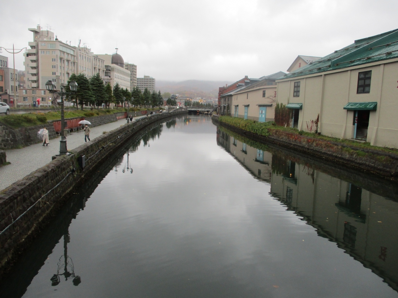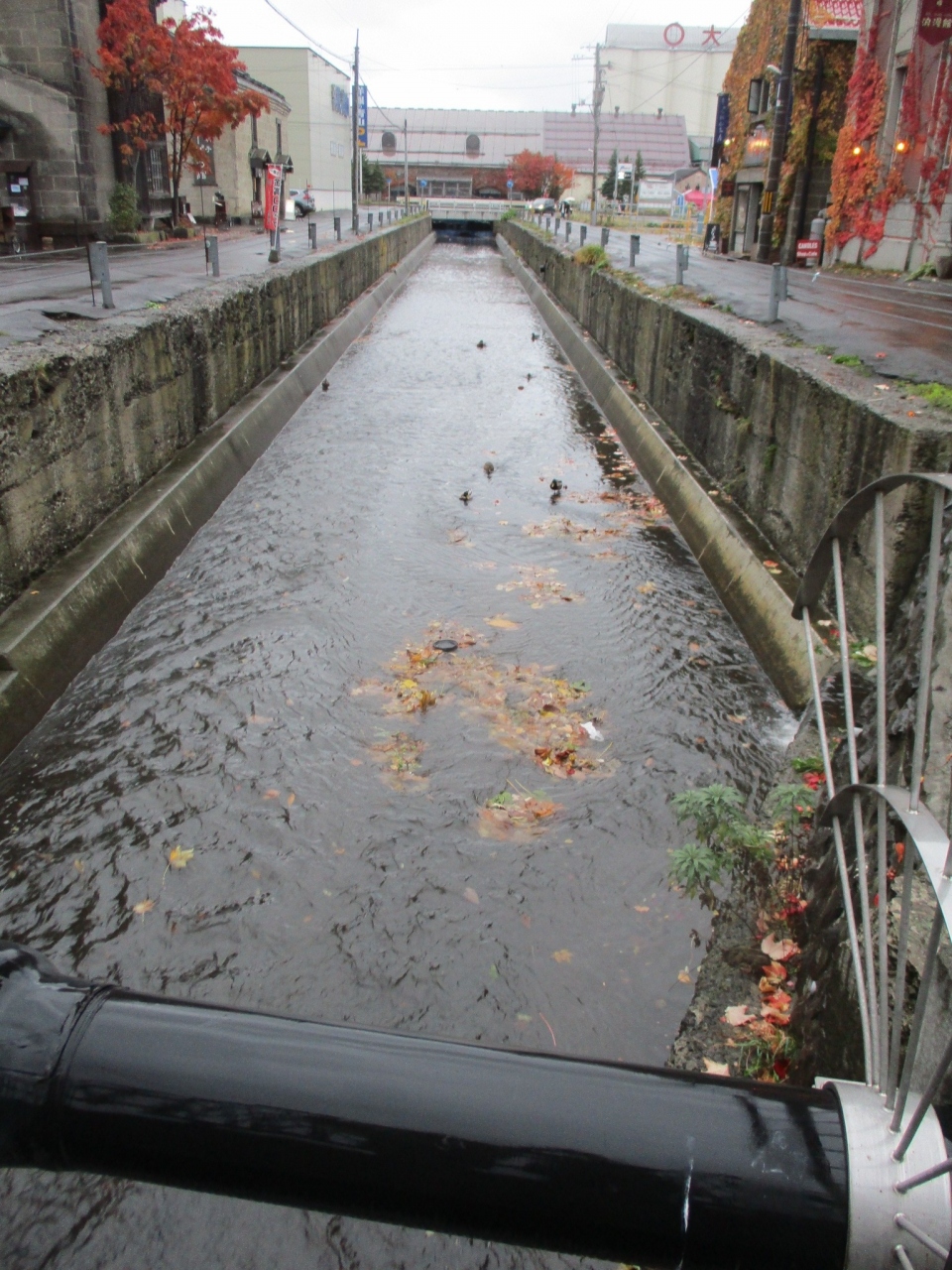 メルヘン交差点から堺町通りを歩いていくと、小さな川にかかる堺橋に至ります。この川が於古発川で、小樽市街の中心部を流れ、小樽運河へと続いています。これといった特徴もないごく普通の小さな川で、歩いていてもほとんど気にとめることもないように思います。