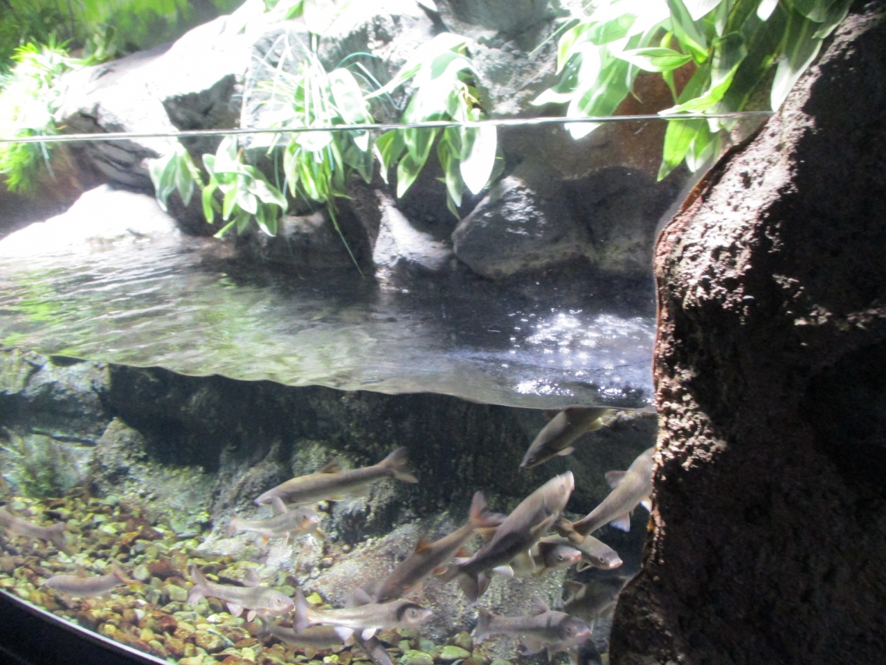 淡水魚の水族館としては、日本最大級の水槽をそなえているそうです。館内は、サーモンゾーン、支笏湖ゾーン、世界の淡水魚ゾーンなどにわかれています。中でも特徴的なのは、千歳川の左岸に設けられた水中観察ゾーンで、いくつもの大きな窓を通して、千歳川の川の中をそのまま観察することができます。秋にさけが川を遡上する様子もながめることができるそうです。