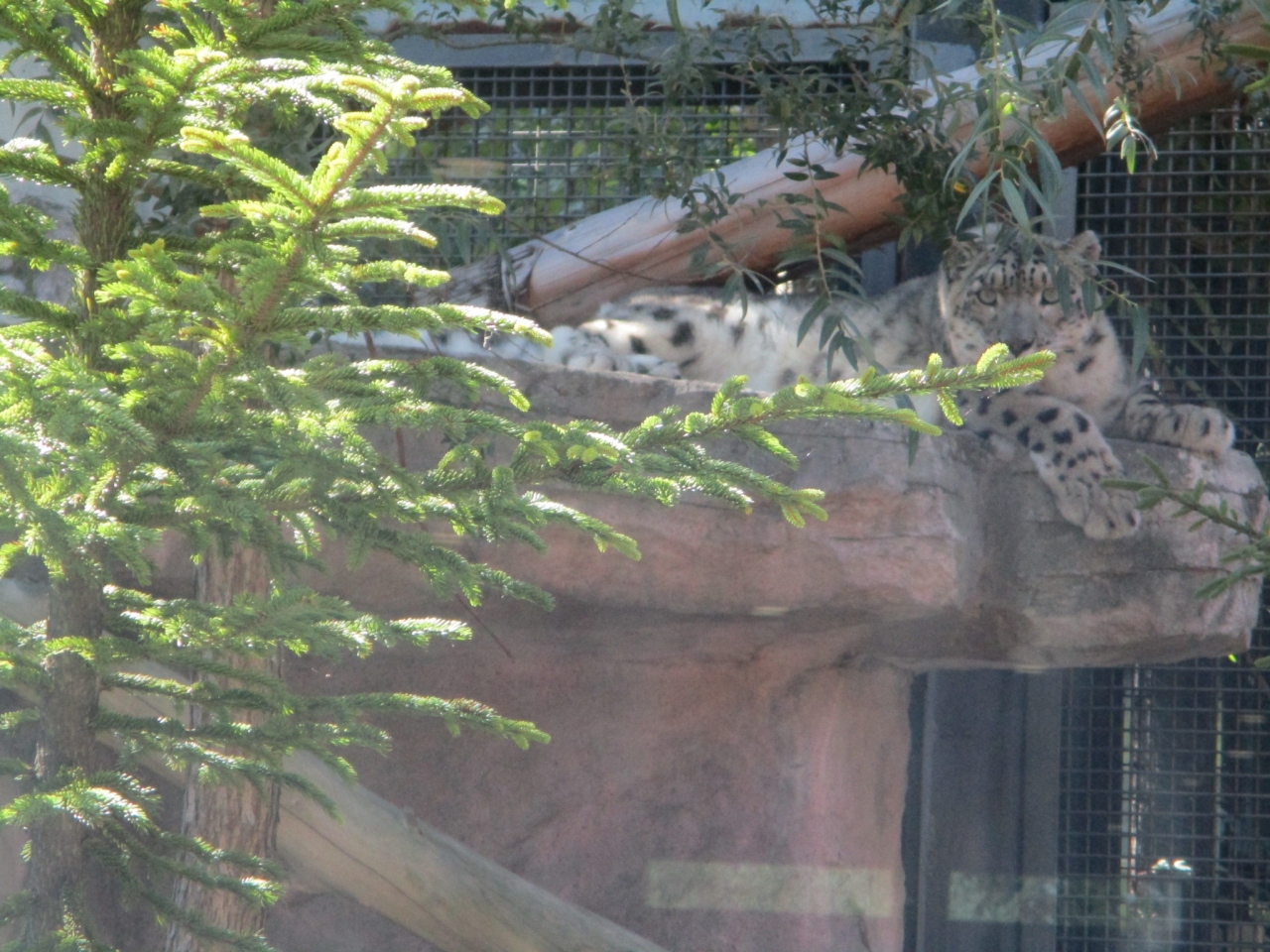 札幌円山動物園のアジアゾーンのいっかくです。ここでは、シベリアのタイガ地帯にくらしているアムールトラとヒマラヤなどの山岳地帯で生息するユキヒョウが飼育、展示されています。ユキヒョウは岩の上で休憩していたのですが、突然、前のほうに出てきてその姿を見せてくれました。