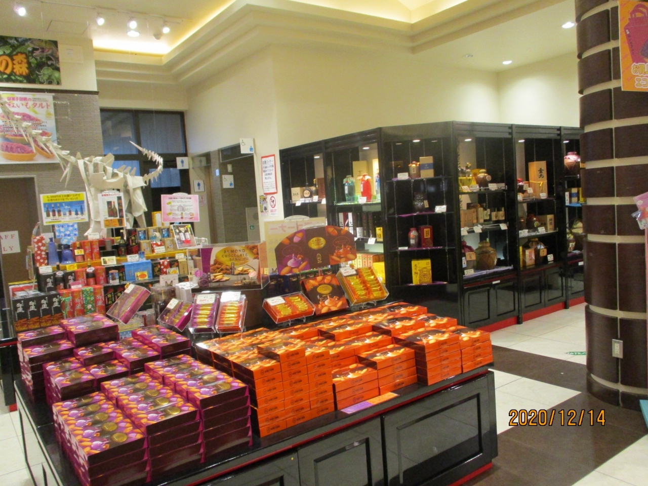 定期観光バス「美ら海号」で最後に下車したのが、このお菓子御殿です。ここは、沖縄銘菓の紅芋タルトを製造販売していますが、それ以外のお菓子も色々と扱っています。わりと広い店内がお菓子で満たされ、とても華やかな感じがしました。