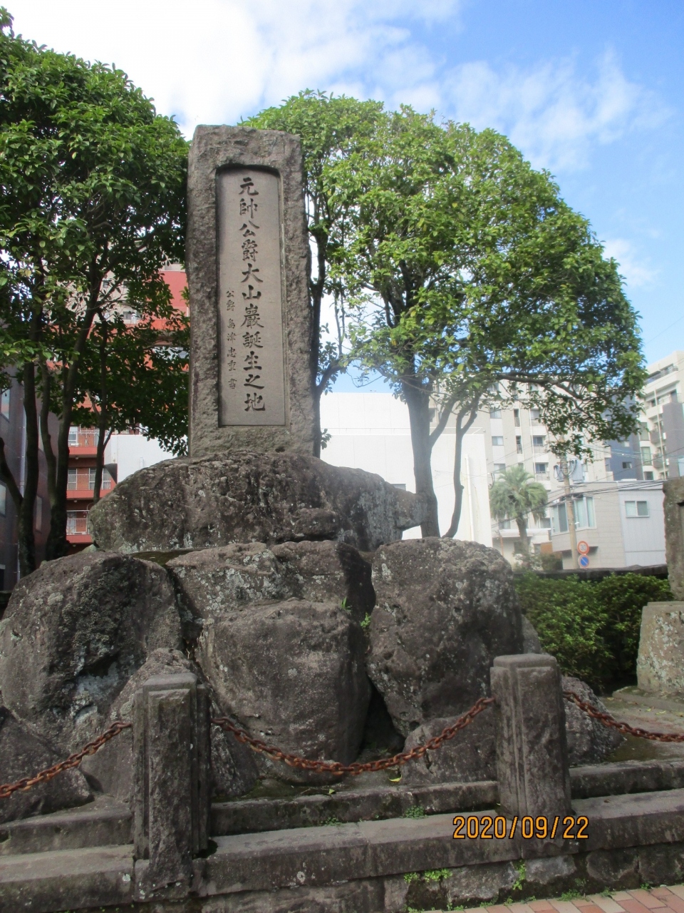 鹿児島中央高校付近にたつとても立派な碑です。大山巌は明治に活躍した軍人・政治家で、西郷隆盛といとこの関係にあったそうです。日本海海戦でバルチック艦隊を破った東郷平八郎の碑も近くにありますが、それと比べるととても大きく、立派なものだと思いました。